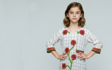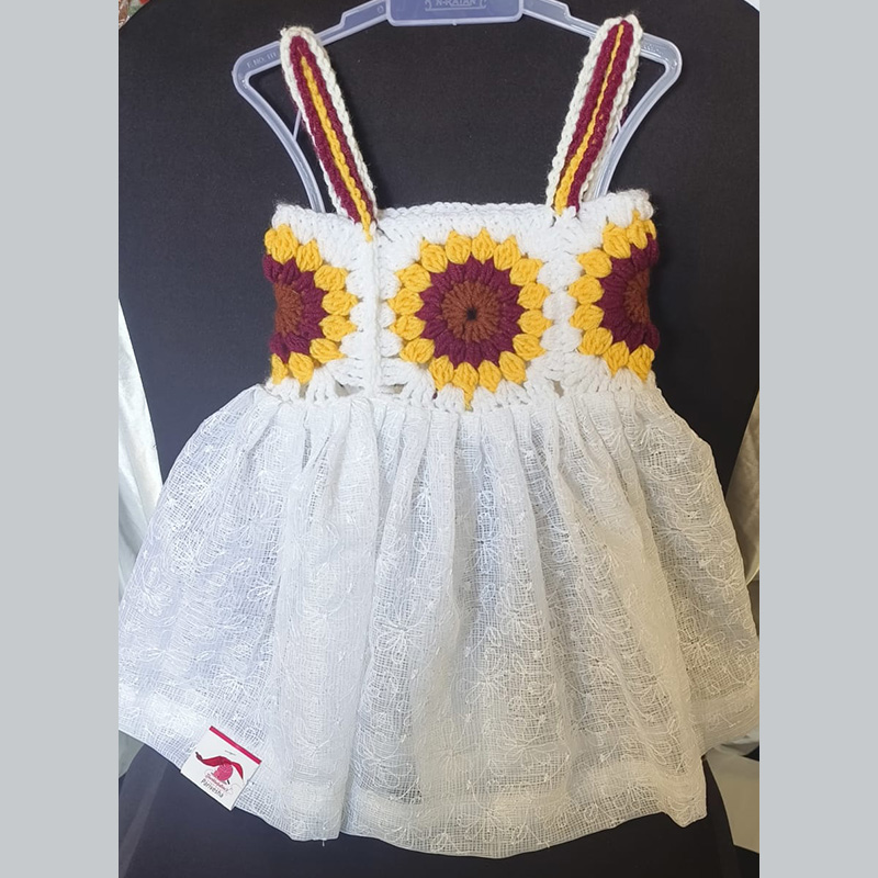 Yoke in soft crochet yarn. Lower piece soft cotton hakoba fabric
