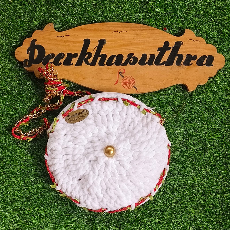 as a concept was envisaged by dr Draupadi Praveen in the year 2019 at a time when the lockdown of the pandemic taught us to think basic and innovate our talents. The concept of hand woven accessories, bags, purses, yarn-wear and items for daily use has been alive since time immemorial. Deerkhasuthra envisions to adapt that concept to the needs of our modern lives. Each offering of deerkhasutra is devotedly curated by hand by Dr Draupadi Praveen which gives it that extra homely and humane touch that is so very sought after in today’s times. Welcome to the world of deerkhasuthra, where traditional elegance blends with contemporary sensibilities.
